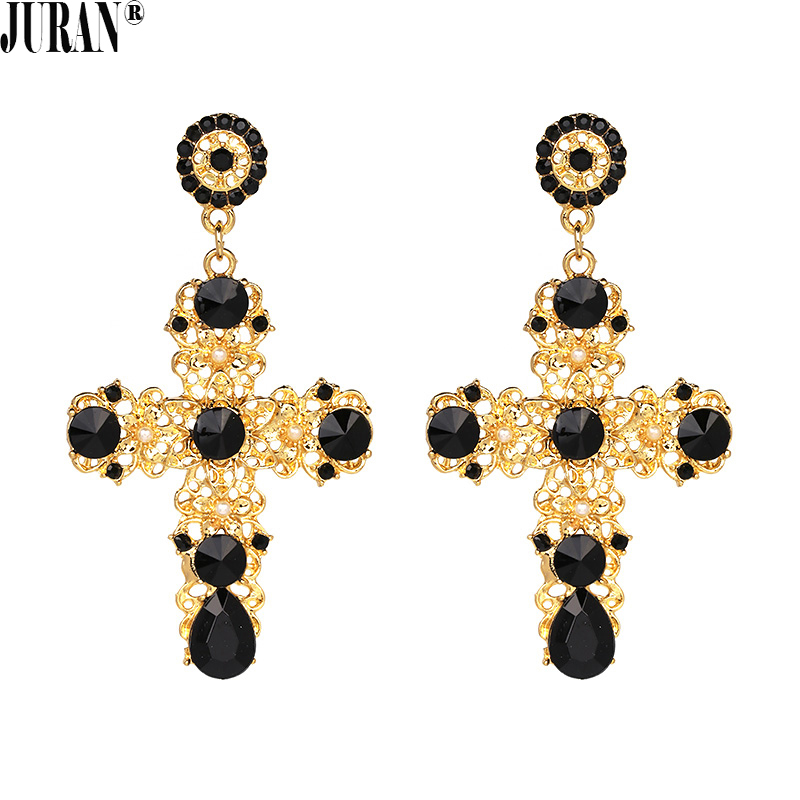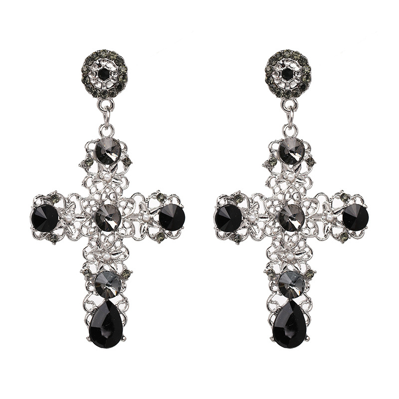 Baroque Style Black Crystal Cross Drop Earrings