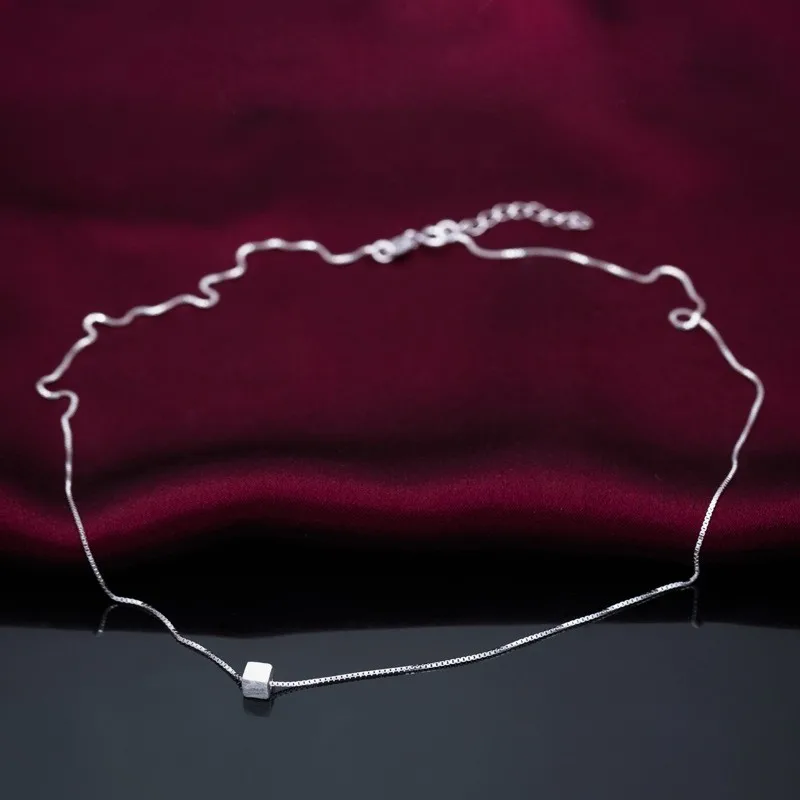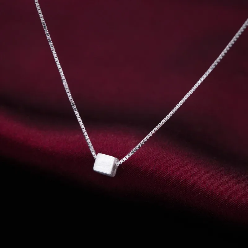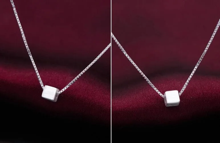 Tiny 925 Sterling Silver Dainty Cube Necklace Pendant