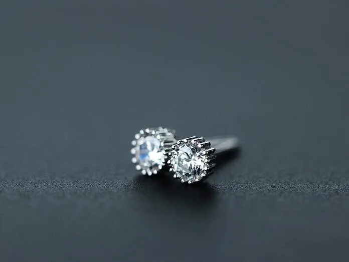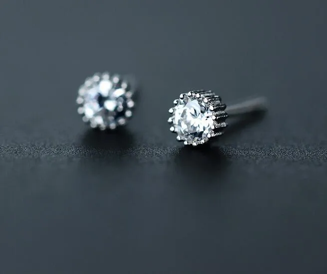 Very tiny 925 sterling silver Round CZ stone Stud Earrings