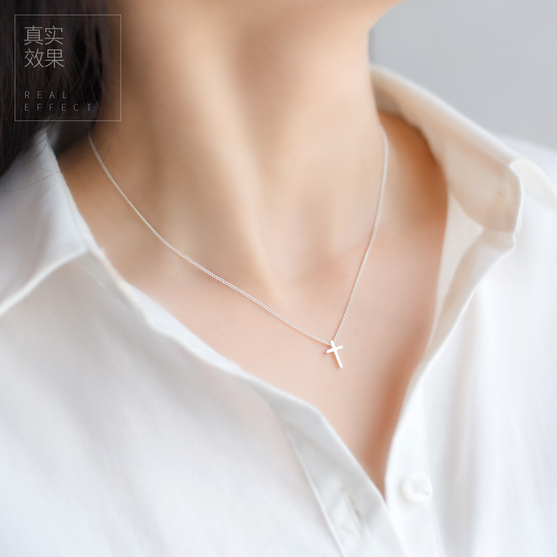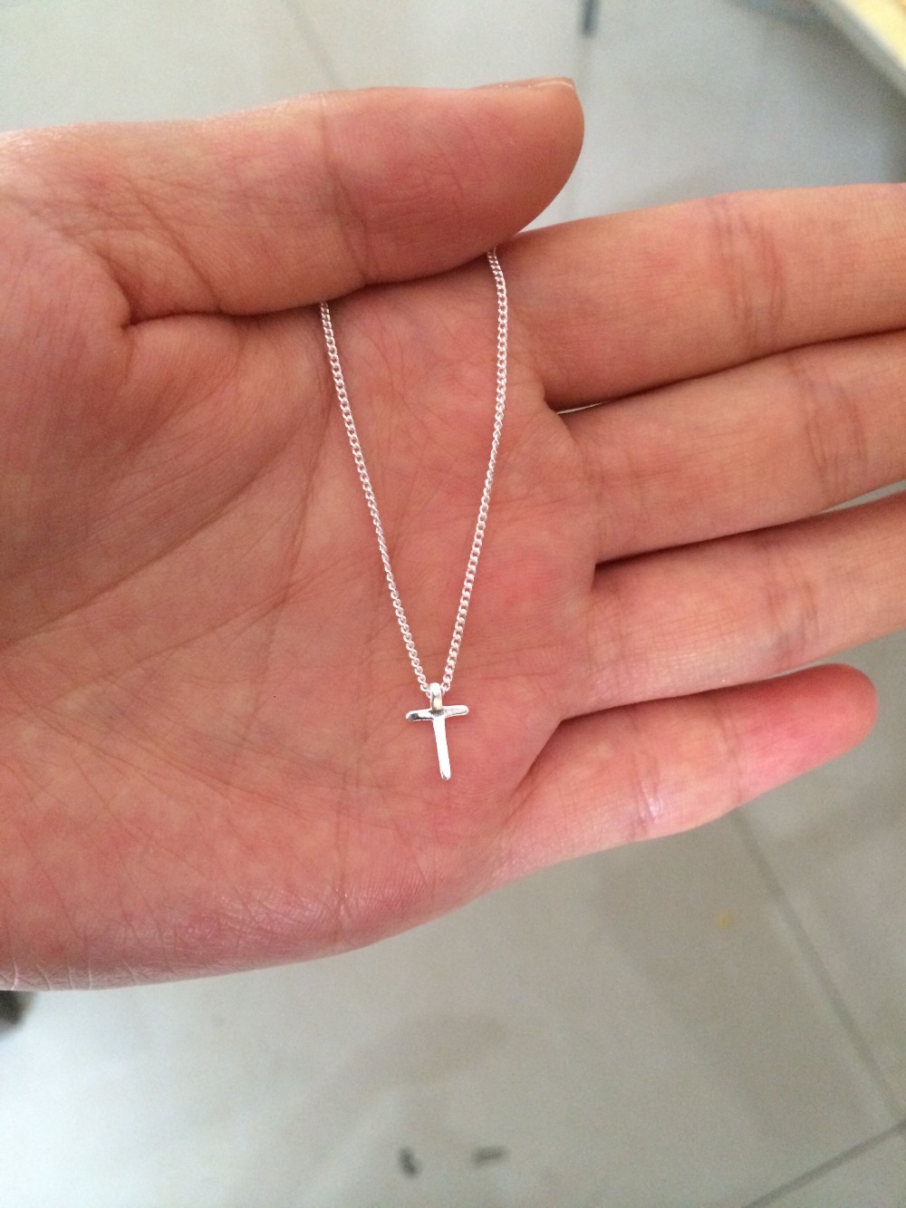 Very tiny 925 Sterling Silver Cross pendant necklace